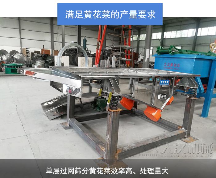 以上就是小編為您介紹的黃花菜除雜過濾使用的單層不銹鋼直線振動(dòng)篩,如果您還有不懂的篩分問題,歡迎致電大漢客服部,我們將為您針對(duì)您的問題為您帶來專業(yè)、準(zhǔn)確的回答。