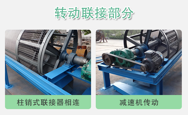 該部分均采用組合式篩網(wǎng),其由傳動輪通過聯(lián)軸器,傳至主軸,該篩網(wǎng)安裝于焊接在主軸的滾籠上。物料從進(jìn)料端進(jìn)入,經(jīng)過滾籠中不斷回轉(zhuǎn),分級,從下方出料口均勻流出,其有效的將成品與返料分離,從而降低勞動強(qiáng)度。