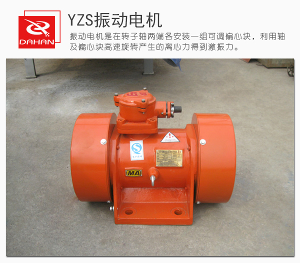 YZS振動電機是動力源與振動源結合為一體的激振源,振動電機是在轉子軸兩端各安裝一組可調偏心塊,利用軸及偏心塊高速旋轉產(chǎn)生的離心力得到激振力。