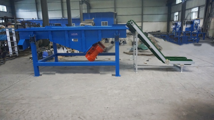 破碎機 + 振動篩:廢舊輪胎經(jīng)破碎機撕裂、破碎成橡膠塊后,由輸送帶送入振動篩,通過粗篩網(wǎng)分離出未破碎完全的大塊橡膠與雜質(zhì),合格橡膠塊進入下一道工序。
