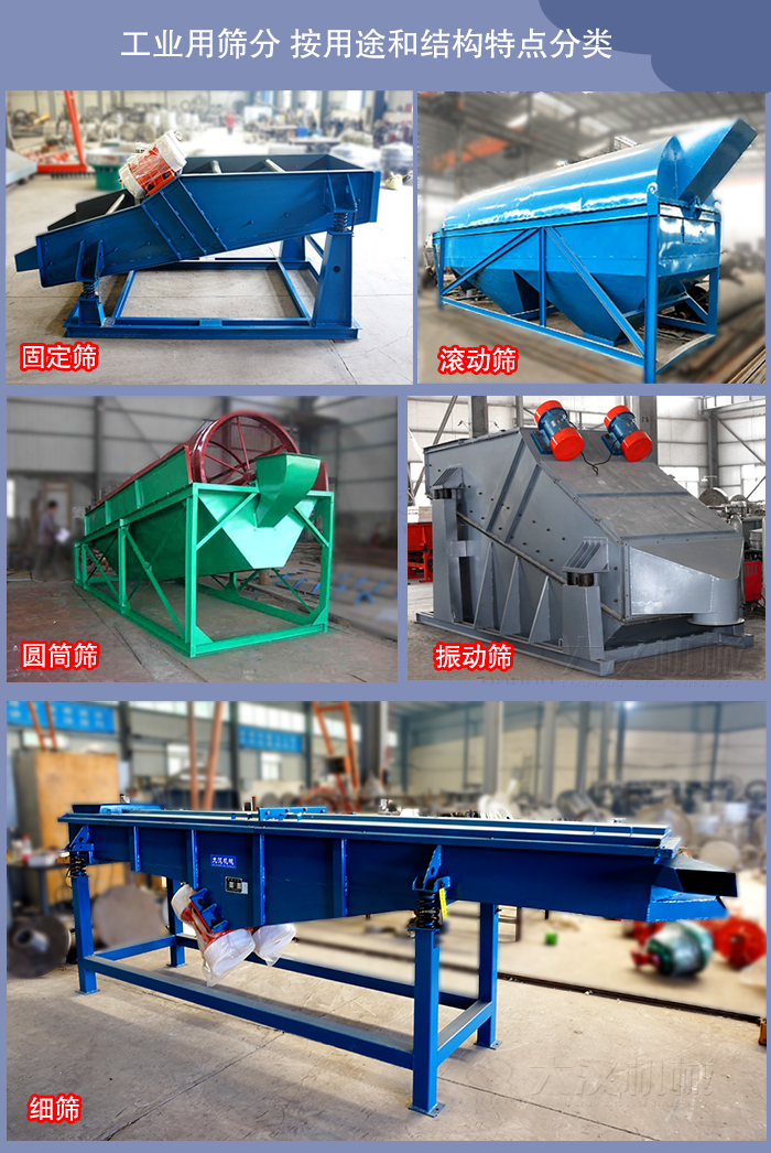 工業(yè)用篩分機(jī) 按用途和結(jié)構(gòu)特點(diǎn)大致可分為: