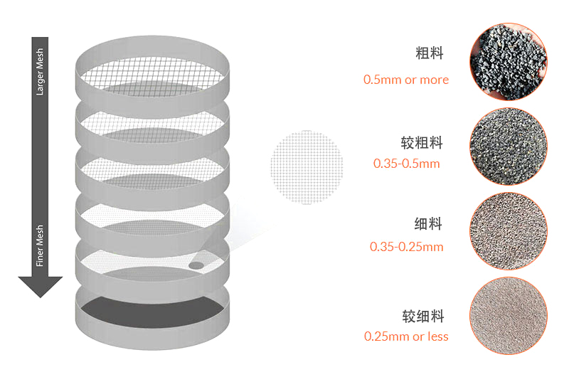 人工手篩費(fèi)時(shí),勞動(dòng)強(qiáng)度大,"機(jī)械篩分"將篩子按孔徑大小疊在一起,給料放在上面一層篩子上,并加上蓋和底盤(pán),一般疊5-6個(gè)篩子,然后放在實(shí)驗(yàn)室振動(dòng)篩上進(jìn)行機(jī)械振動(dòng)篩分。通常振動(dòng)時(shí)間為20分鐘,檢測(cè)篩分質(zhì)量時(shí),再用篩機(jī)5分鐘,如每分鐘篩下量小0.2%試驗(yàn)樣量即為合格,對(duì)于粗粒,過(guò)篩率小于1%即可。為避免損失和延長(zhǎng)篩分時(shí)間,有時(shí)在開(kāi)始篩分時(shí)先用較細(xì)的篩子將粉塵篩除。