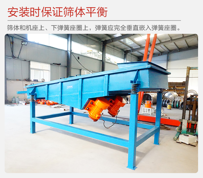 2、篩體和機(jī)座上、下彈簧座圈上,彈簧應(yīng)完全垂直嵌入彈簧座圈,以保證篩體平衡,篩機(jī)的振動(dòng)部分切勿與機(jī)外其它物體有任何硬性連接或接觸。